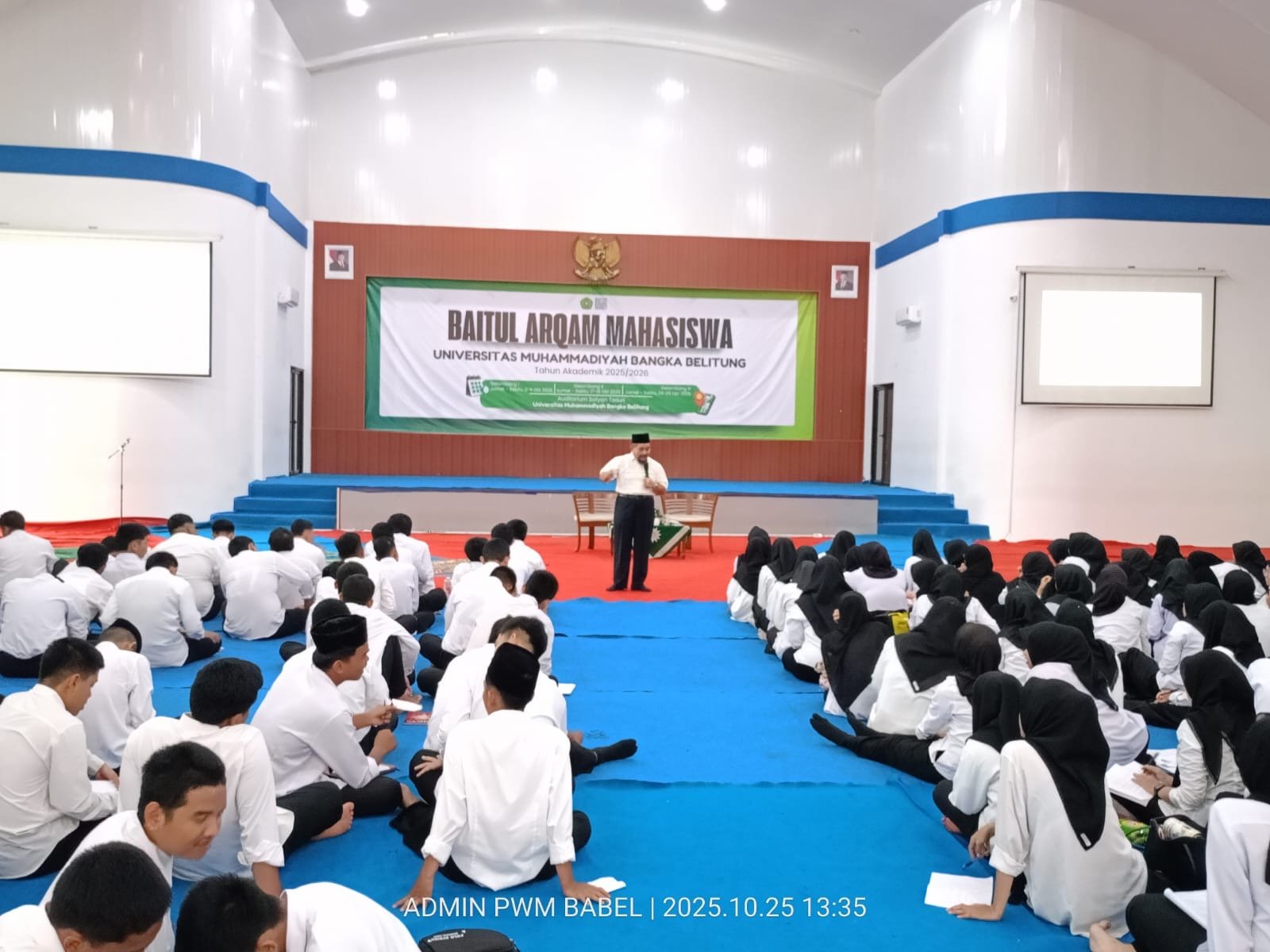 BabelMendunia.com, Pangkalpinang — Suasana khidmat menyelimuti kegiatan Baitul Arqom Mahasiswa Gelombang III yang digelar Sabtu siang di Universitas Muhammadiyah Bangka Belitung. Kegiatan ini menjadi dari rangkaian pembinaan kader tahun ini, menghadirkan langsung Ketua Pimpinan Wilayah Muhammadiyah (PWM) Bangka Belitung, Drs. KH. Sahirman Djumli, M.Si, sebagai pemateri dengan tema “Profil Kader dan Nilai Perjuangan Tokoh Muhammadiyah.”