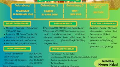 Diskon 60% bagi orang tua aktif di Persyarikatan Muhammadiyah (dengan menunjukkan NBM atau SK Organisasi)