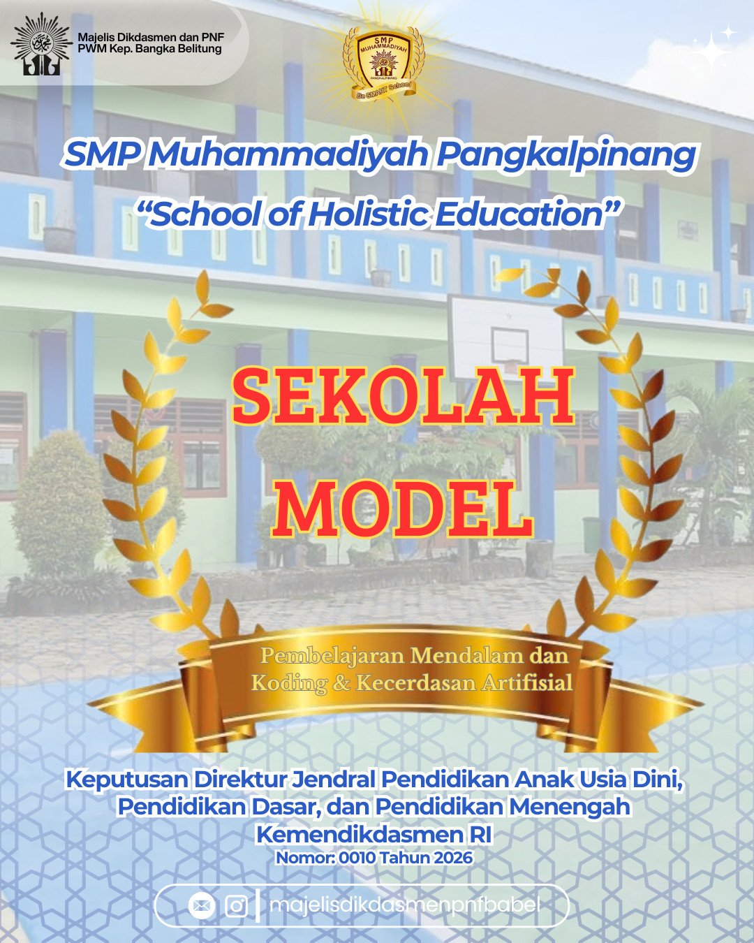 Penunjukan SMP Muhammadiyah Pangkalpinang sebagai sekolah model menjadi bentuk kepercayaan pemerintah terhadap komitmen sekolah dalam menghadirkan pendidikan yang inovatif, adaptif, dan relevan dengan perkembangan teknologi serta kebutuhan masa depan.